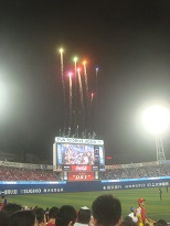 ふだん五回裏終了時の花火三百発が薄暮だといけないというので七回裏にしてましたが、五回終了時でもう十分夜でした。が、そこからスカスカでなんとか3時間35分で終了。