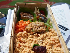 弘前駅で買った「ばっちゃ御膳弁当」。う〜ん・・・。