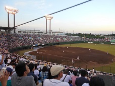 都心に近いがこの地方球場っぽさ(選手が近い、スタンドが低いので空がたくさん見える、外の露店の焼き鳥の臭い・・・etc)がすばらしい。
