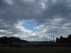 途中一度照明も点けたが、だんだん晴れてきたのでもったいないので消してしまい、試合終了時はこんな天気に。しかし風があって寒いぐらいとなった。