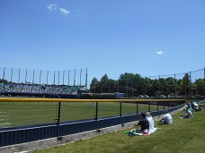 試合しております。両翼95メートル、中堅122メートル。外野もあります。