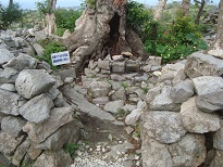 ○伊是名城(いぜなぐすく) ・・・ 鮫川親方が作ったということだが、ピラミッド型の山の中腹に石垣があるのがそれであるという。登り道があるのでついつい昇って行ったら、そちらには昇らずに海側に回り込んで・・・聖所が・・・水・・・蝶・・・そして・・・(詳細は「琉球国由来記」巻十六(38)「泉井」(90)「雨乞ノ事」参照。)