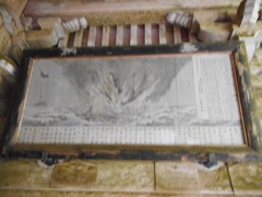 これは大正何年だかのベヨネーズ岩礁の火山バクハツのときに付近を航行中に間一髪助かった御前崎の船乗りたちの感謝の絵馬。当時の状況が詳細に描かれている。同じときに遭難した船もあるので、彼らの「生き残った不思議」への感謝は強かったであろう。