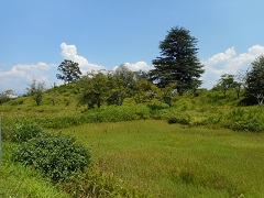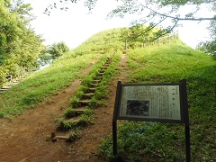 あちー。馬塚古墳。右手が前方部で、中央部が後円部。後円部は比高数メートルだが意外と眺望がよかった。観音さんの石像などが並ぶ。