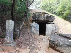 〇鍬寄一号墳 ・・・ 蘇羅比古神社近くにある古墳であるが、横穴式石室だけが遺る。このあたり砂鉄地帯であり、古代の鉄器生産豪族首長の墳墓ならん、という。