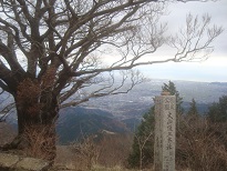 左側のが神木・雨降木だそうです。この方向には三浦半島、房総半島、右手には伊豆半島、左手には関東平野がすべて見渡せ、東京に高層ビルが林立しているのや筑波山まで見えた。富士山は雲で見えなかった。